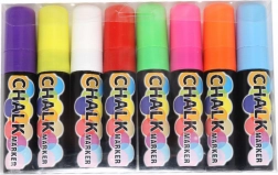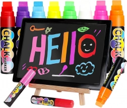 Odkryj uniwersalne markery kredowe w zestawie 8 kolorów do kreatywnego pisania i rysowania na szkle, tablicach, ceramice i innych nieporowatych powierzchniach. Zapewniają intensywne krycie na jasnym i ciemnym tle, mają szybkoschnący tusz i dzięki ergonomicznemu korpusowi wygodnie leżą w dłoni. Napisy łatwo zetrzesz wilgotną ściereczką, dlatego idealnie sprawdzą się w domu, szkole, biurze oraz na witrynach sklepowych.