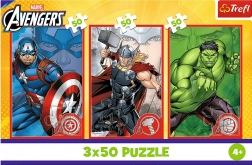 Odkryj zabawę dla całej rodziny dzięki trzem zestawom po 50 elementów w jednym opakowaniu. 3 puzzle w jednym oznacza więcej radości, wspólnego układania i rozwijania umiejętności. Motywy z bohaterami DISNEY MARVEL THE AVENGERS – Captain America, Thor i Hulk – ucieszą każdego małego fana superbohaterów.