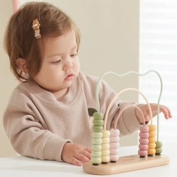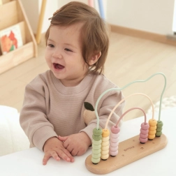 Pastelowe koraliki na krętych torach zachęcają dzieci do odkrywania liczb, sortowania i porównywania ilości – wszystko w formie zabawy.