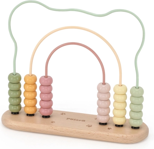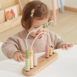 Ten wysokiej jakości drewniany labirynt z pastelowymi koralikami wspiera wczesny rozwój dziecka. Stabilna drewniana podstawa i gładkie metalowe tory są zaprojektowane do bezpiecznej zabawy, która rozwija myślenie logiczne, koncentrację oraz cierpliwość. Minimalistyczny design w delikatnych barwach pasuje do każdego pokoju dziecięcego.