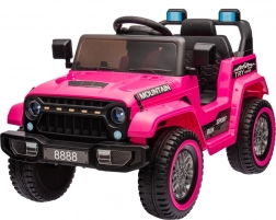 Różowy samochód Mountain zapewnia dzieciom niezapomniane wrażenia z jazdy z wysokim poziomem bezpieczeństwa dzięki zdalnemu sterowaniu i pasom bezpieczeństwa.