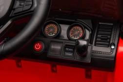Pojazd wyposażono w realistyczne elementy, takie jak przednie światła, lusterka boczne oraz sportowe czarne wnętrze, co zwiększa autentyczność wrażeń.