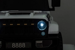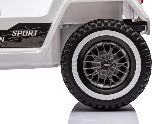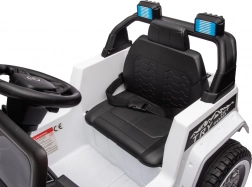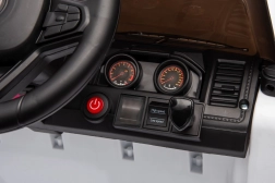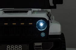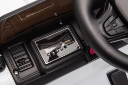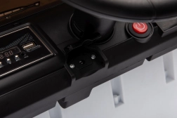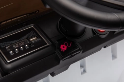 Bezpieczeństwo zapewniają pasy bezpieczeństwa i pilot z trzema prędkościami oraz awaryjnym przyciskiem Stop. Dzieci docenią światła LED i otwierane drzwi, które naśladują prawdziwy samochód. Pojazd wyposażono także w interaktywny panel audio z MP3, kartą SD, wejściem AUX i USB.