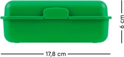 Dzięki mechanizmowi zatrzaskowemu pudełko łatwo się otwiera i zamyka, co gwarantuje bezpieczne przechowywanie zawartości.