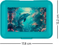 Utrzymuj swoje jedzenie świeże i bezpiecznie przechowywane z tym pięknie zaprojektowanym pudełkiem na lunch z motywem delfina. Jego zamknięcie na zatrzask zapewnia, że zawartość pozostanie bezpiecznie wewnątrz. Wewnętrzna dzieląca przegroda umożliwia efektywną organizację jedzenia według Twoich potrzeb.