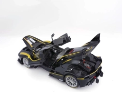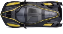 Dzięki metalowej konstrukcji model jest solidny i trwały, co czyni go idealnym do długotrwałego ekspozycjonowania na półce lub jako wspaniały prezent dla miłośników motoryzacji. Przygotuj się, że ten model przyciągnie uwagę swoim czarnym lakierem i charakterystycznymi żółtymi akcentami, doskonale naśladując prawdziwy samochód wyścigowy.