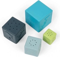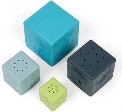 Klocki świetnie nadają się także do zabawy w wodzie. Mali miłośnicy wody mogą nabierać i wylewać wodę przez otwory znajdujące się w trzech klockach. W ten sposób uczą się zasad przyczyny i skutku, rozwijając logiczne myślenie.