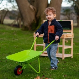Dzięki ergonomicznemu designowi z dwoma rączkami i solidnym gumowym kołem taczka jest łatwa do prowadzenia nawet dla małych dzieci.