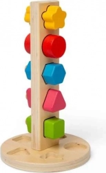 Ta sprytna zabawka edukacyjna łączy zabawę z nauką. Dzieci mogą wkręcać kolorowe kształty na kołek, sortować je według konturów na podstawie oraz ćwiczyć logiczne myślenie i percepcję przestrzenną. Trwałe drewniane wykonanie i bezpieczne farby zapewniają długą żywotność i beztroską zabawę.