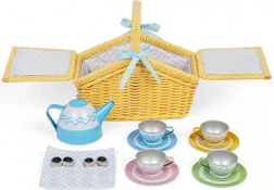 Zestaw piknikowy w koszyku dla dzieci daje możliwość tworzenia własnych scenariuszy i opowieści. W skład wchodzi wiklinowy kosz z 18 elementami, takimi jak metalowe filiżanki, talerzyki i imbryk, które zapewniają dzieciom długie godziny zabawy i wzmacniają umiejętności społeczne.