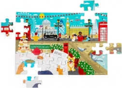 Puzzle z ilustracjami kultowych londyńskich zabytków, takich jak Big Ben i London Eye.
