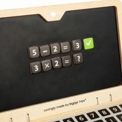 Dodatkowo dołączone jest solidne etui do łatwego przenoszenia, dzięki czemu ten laptop jest idealny w podróży. Rodzice mogą być spokojni, ponieważ drewno użyte do produkcji jest zrównoważone i spełnia europejskie normy bezpieczeństwa.