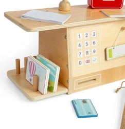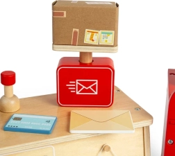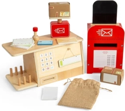 Odkryj, co dzieje się na poczcie dzięki temu fascynującemu zestawowi dla dzieci powyżej 3 lat. Zestaw zawiera skrzynkę pocztową, kasę, wagę, worek na paczki, paczki, listy i wiele innych rzeczy, które mali listonosze potrzebują do swojej pracy. Każdy element jest wykonany z zrównoważonego drewna certyfikowanego FSC® i pomalowany nietoksycznymi farbami.