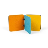 Kolorowe strony z różnymi fakturami oferują stymulację wzrokową i dotykową.