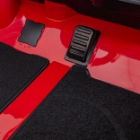 Rodzice docenią pilot 2,4 GHz z trzema prędkościami i przyciskiem awaryjnego zatrzymania STOP, wskaźnik poziomu naładowania, bagażnik na drobiazgi oraz praktyczne akcesoria w zestawie (ładowarka, zestaw montażowy, pokrowiec i welurowe dywaniki).