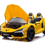 Model LAMBORGHINI Revuelto XL wyróżnia się realistycznym wyglądem z unoszonymi drzwiami, komfortowym podwoziem z tylnymi amortyzatorami i cichymi kołami EVA 24×9 cm. Dzieci ucieszy płynny soft start, wybór dwóch prędkości oraz jazda do przodu/tyłu, a rodziców – pełna kontrola dzięki pilotowi z przyciskiem STOP.