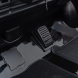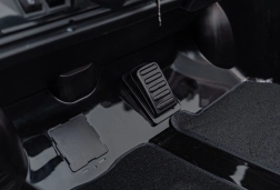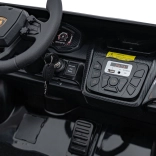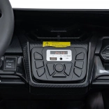 Dwumiejscowe siedziska z eko skóry z pasami, dźwięki i klakson na kierownicy, radio FM, MP3, USB, AUX i Bluetooth. Wskaźnik baterii informuje o poziomie naładowania.