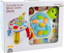 - Pianinko z odgłosami zwierząt; gra zręcznościowa z młotkiem; efekty dźwiękowe i świetlne; interaktywna głowa krokodyla