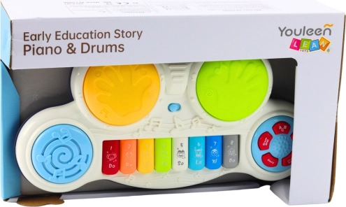 Odkryj świat muzyki z interaktywnym pianinkiem z bębenkami, które łączy zabawę i naukę. Osiem klawiszy odtwarza melodie oraz odgłosy zwierząt, a para dotykowych bębenków zachęca dzieci do odkrywania rytmu. Delikatne podświetlenie LED tworzy przyjemną atmosferę i motywuje do dalszej zabawy.