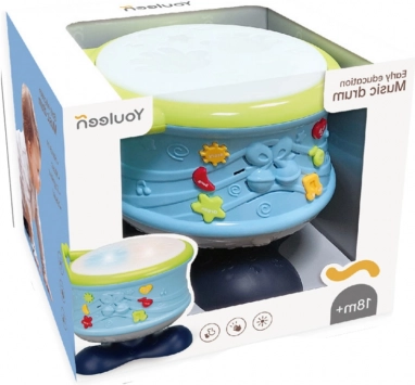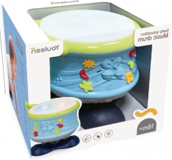 Dzięki praktycznemu uchwytowi bębenek jest łatwy do przenoszenia – idealny do domu i w podróży. Przyciski uruchamiające różne melodie wspierają percepcję słuchową i rozwój poczucia rytmu, a manipulacja zabawką poprawia motorykę małą oraz koordynację.
