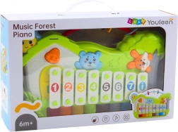 Leśne muzyczne pianinko łączy urok klasycznego ksylofonu z klawiszami pianinka, dzięki czemu dzieci mogą tworzyć własne melodie i doskonalić koordynację ruchową. Urzeka je uroczy leśny motyw ze zwierzątkami oraz kolorowe, ponumerowane klawisze, które ułatwiają naukę podstawowych dźwięków i rytmu.