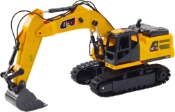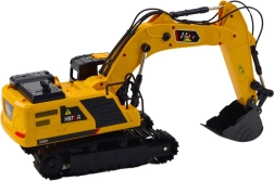Realistyczna konstrukcja koncentruje się na napędzie gąsienicowym, który zapewnia lepszą przyczepność do podłoża i stabilność podczas jazdy po różnych nawierzchniach. Solidna budowa i wysoka jakość materiałów sprawiają, że ta koparka jest odporna na uszkodzenia, co czyni ją idealnym wyborem do intensywnej zabawy.