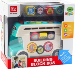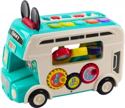 Autobus jest wielobarwny z interaktywnymi elementami do nauki i rozwoju dzieci. Pomaga rozwijać umiejętności motoryczne poprzez różne elementy do zabawy.