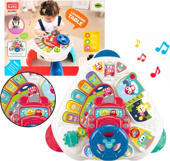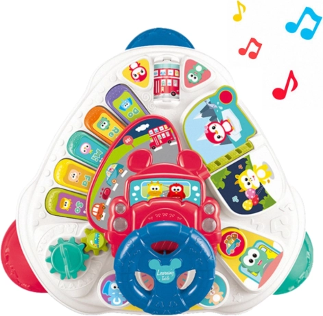 Interaktywny edukacyjny stolik daje dzieciom możliwość rozwijania zdolności manualnych, poznawczych i muzycznych. Zawiera klawiaturę z kolorowymi przyciskami, która otwiera świat pierwszych melodii i dźwięków.