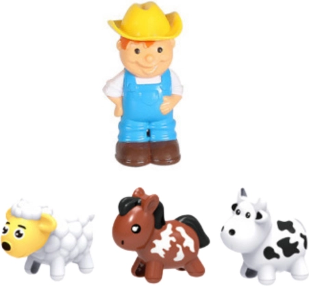 Zestaw zawiera plastikowe figurki farmera i zwierząt, które są lekkie i dostosowane do potrzeb dzieci, umożliwiając świetną zabawę w farmę.