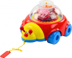 Wesoła biedronka do ciągnięcia dla najmłodszych dostarcza mnóstwo zabawy i nauki. Podczas jazdy pod przezroczystą kopułką wirują kolorowe kuleczki, a na górze czeka obrotowy zegar do pierwszego oswajania z czasem. Dzięki sznureczkowi do ciągnięcia wspiera pierwsze kroczki, koordynację ruchów i motorykę dzieci od 12 miesięcy.