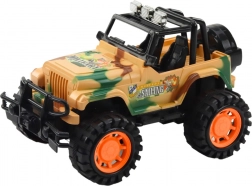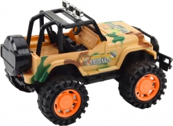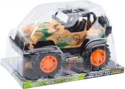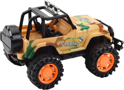 Dziecięcy samochód terenowy w beżowym stylu moro dostarcza mnóstwo akcji: ma podwyższone zawieszenie, duże koła z głębokim bieżnikiem oraz wytrzymałą plastikową konstrukcję do jazdy w domu i na zewnątrz. Wymiary pojazdu 25 × 16,5 × 15,5 cm.