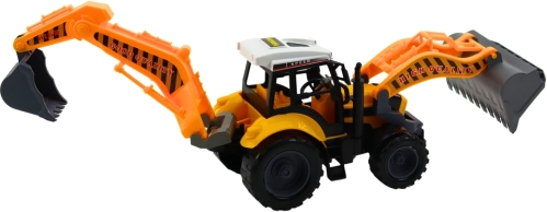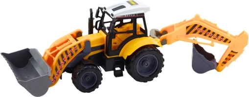 Ten wierny model maszyny roboczej łączy wygląd sprzętu budowlanego i rolniczego. Solidne wykonanie z tworzywa oraz duże koła umożliwiają płynną jazdę po różnych nawierzchniach, dlatego sprawdzi się w pokoju dziecięcym i w ogrodzie. Dzięki podnoszonej przedniej łyżce oraz ruchomemu tylnemu ramieniu dzieci mogą naśladować prawdziwe prace na polu i na budowie.