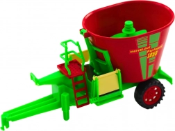 Czerwono‑zielony wóz paszowy z obrotowym bębnem mieszającym naśladuje prawdziwy sprzęt rolniczy i rozszerza scenariusze zabawy.