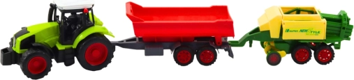 Ten zestaw dziecięcego traktoru z przyczepą i prasą wiernie naśladuje prawdziwe maszyny rolnicze i pozwala przenieść życie na farmie prosto do dziecięcego pokoju. Duże koła zapewniają stabilność i płynny ruch na różnych nawierzchniach, a dołączana prasa i przyczepa umożliwiają realistyczne scenariusze zabawy.