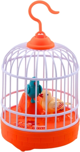 Śpiewające ptaszki w klatce z aktywacją głosem, światłem i dźwiękiem. Bezpieczny plastik ABS, lekka konstrukcja. Świetny prezent dla dzieci. Kolor pomarańczowy.
