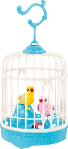 Elektroniczna klatka dla ptaków ze śpiewającymi ptaszkami, światła i dźwięki – niebieska