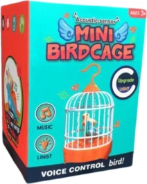 Interaktywna klatka dla ptaków ze śpiewającymi ptaszkami. Aktywacja głosem, światła i dźwięki, bezpieczny plastik ABS, zasilanie 3× AA. Lekka i świetna w podróży.