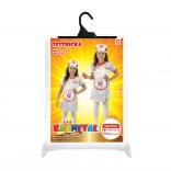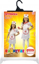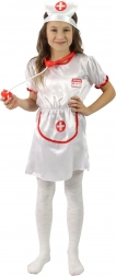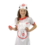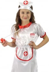 Uroczy karnawałowy kostium dla małych pielęgniarek zachwyci każdą miłośniczkę zabawy w doktora. Rozmiar M jest odpowiedni dla dzieci 6–8 lat (117–128 cm). Zestaw zawiera sukienkę i czapkę; stetoskop nie jest częścią zestawu.
