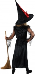 Podaruj swojej dziewczynce magiczny wygląd, który zachwyci na każdej imprezie. Czarno‑czerwona sukienka z delikatną koronką w pajęczynę na rękawach uzupełniona jest spiczastym kapeluszem z kokardą – razem tworzą autentyczny kostium czarownicy dla dzieci, w którym będzie czuła się świetnie.