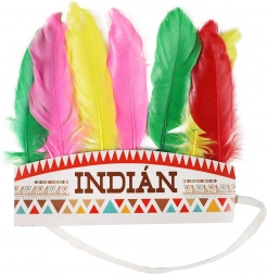 Zmień się w prawdziwego Indianina w kilka chwil! Ten stylowy indiański pióropusz z czeskim nadrukiem i wielobarwnymi piórami to idealny dodatek do kostiumu na karnawał, obóz lub western party. Lekki i wygodny w noszeniu; kolory piór mogą się różnić.