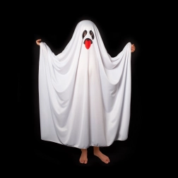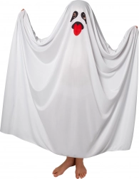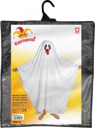 Uroczy i straszny kostium ducha dla dzieci w wieku 3–7 lat umożliwia łatwe przebranie na Halloween, karnawał i szkolne zabawy. Wykonany z lekkiego materiału, ma wygodny krój i otwory na oczy zapewniające bezpieczne pole widzenia. Uniwersalny biały płaszcz z nadrukiem twarzy i długością ok. 106 cm od głowy pasuje zarówno dla chłopców, jak i dziewczynek.