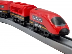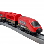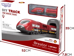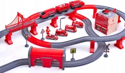 Nowoczesna lokomotywa na baterie (2× AAA, brak w zestawie) jeździ po bogato wyposażonej trasie z mostem i tunelem, zapewniając jeszcze bardziej realistyczne wrażenia.