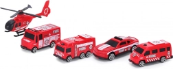Cztery różne wozy strażackie, helikopter i figurka strażaka pozwalają dzieciom tworzyć emocjonujące misje ratunkowe i rozwijać wyobraźnię.