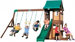 Solidna rama z 100% drewna cedrowego jest odporna na warunki atmosferyczne i przyjemna w dotyku. Dwie huśtawki na linach przyjaznych dla dziecięcych dłoni oraz drążek trapezowy rozwijają koordynację i siłę. Przednia ściana z prawdziwymi drzwiami oraz oknem z zewnętrzną ławeczką pobudza wyobraźnię i zabawy społeczne.
