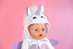 Zachwycający kostium jednorożca dla lalki BABY born pozwala dzieciom wysłać ich 43 cm lalki w bajkowe przygody. Wyróżnia się lśniącymi akcentami i tęczowymi motywami.