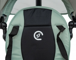 - Siedzisko: duże siedzisko, odpinane oparcie, trzy-punktowe pasy i piankowa barierka ochronna