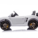 Ten dwuosobowy dziecięcy elektryczny samochodzik wyróżnia się sportowym wyglądem, dopracowanymi detalami i stabilnym napędem 4x4. Realistyczna kabina z kierownicą i elementami sterowania, działające światła oraz otwierane drzwi wspierają bezpieczną i pełną zabawy jazdę. Dwa wygodne siedzenia z pasami zapewniają pewne ułożenie dzieci podczas jazdy.