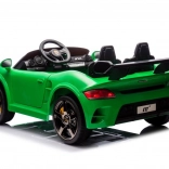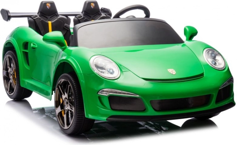 Zielony dziecięcy elektryczny samochodzik 4x4 zaprojektowano z myślą o radosnej jeździe w ogrodzie i na podjeździe. Realistyczne nadwozie ze sportowymi liniami, dopracowane reflektory i tylne skrzydło nadają pojazdowi autentyczny wygląd. Dwa siedzenia z pasami bezpieczeństwa zapewniają dzieciom wygodne i bezpieczne miejsce.