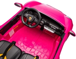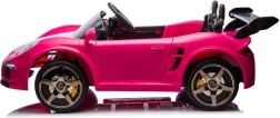 Różowy dziecięcy elektryczny samochodzik 4x4 zachwyci małych kierowców realistycznym sportowym wyglądem, dwoma siedzeniami i pasami bezpieczeństwa. Oferuje otwierane drzwi, przednie i tylne światła, solidne koła oraz praktyczne przednie uchwyty do holowania – idealny do zabawy w ogrodzie i na placu zabaw.