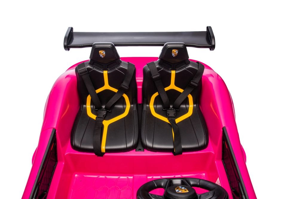 Stylowy dziecięcy elektryczny samochodzik 4x4 w różowym kolorze łączy bezpieczeństwo, wygodę i atrakcyjny design. Dwa siedzenia z pasami bezpieczeństwa zapewniają wystarczająco dużo miejsca dla rodzeństwa lub koleżanki, a otwierane drzwi i sportowe nadwozie podkreślają autentyczne wrażenia z jazdy.